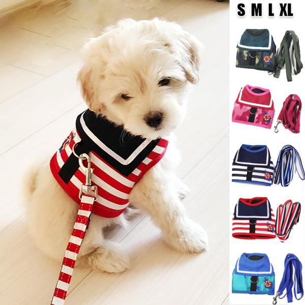 犬 服 ハーネス 犬ハーネス 犬のハーネスリード 犬用ハーネス おしゃれ かわいい 小型犬 中型犬 ペットハーネス 脱げない ベスト ハーネスリードセット 取り外し簡単 サイズ調整可能 コサージュ ストライプ柄が上品な キャンバス地のハーネス リード S Xl Brownie